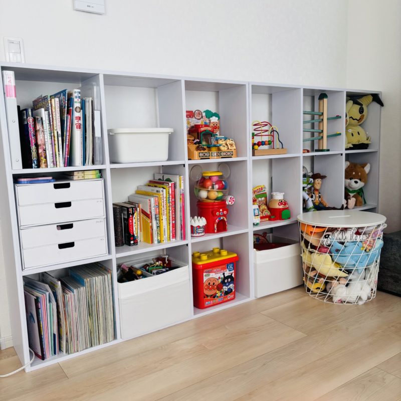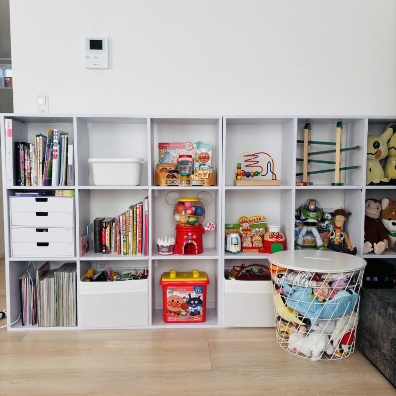 大容量のオープンおもちゃ棚をDIYで制作。